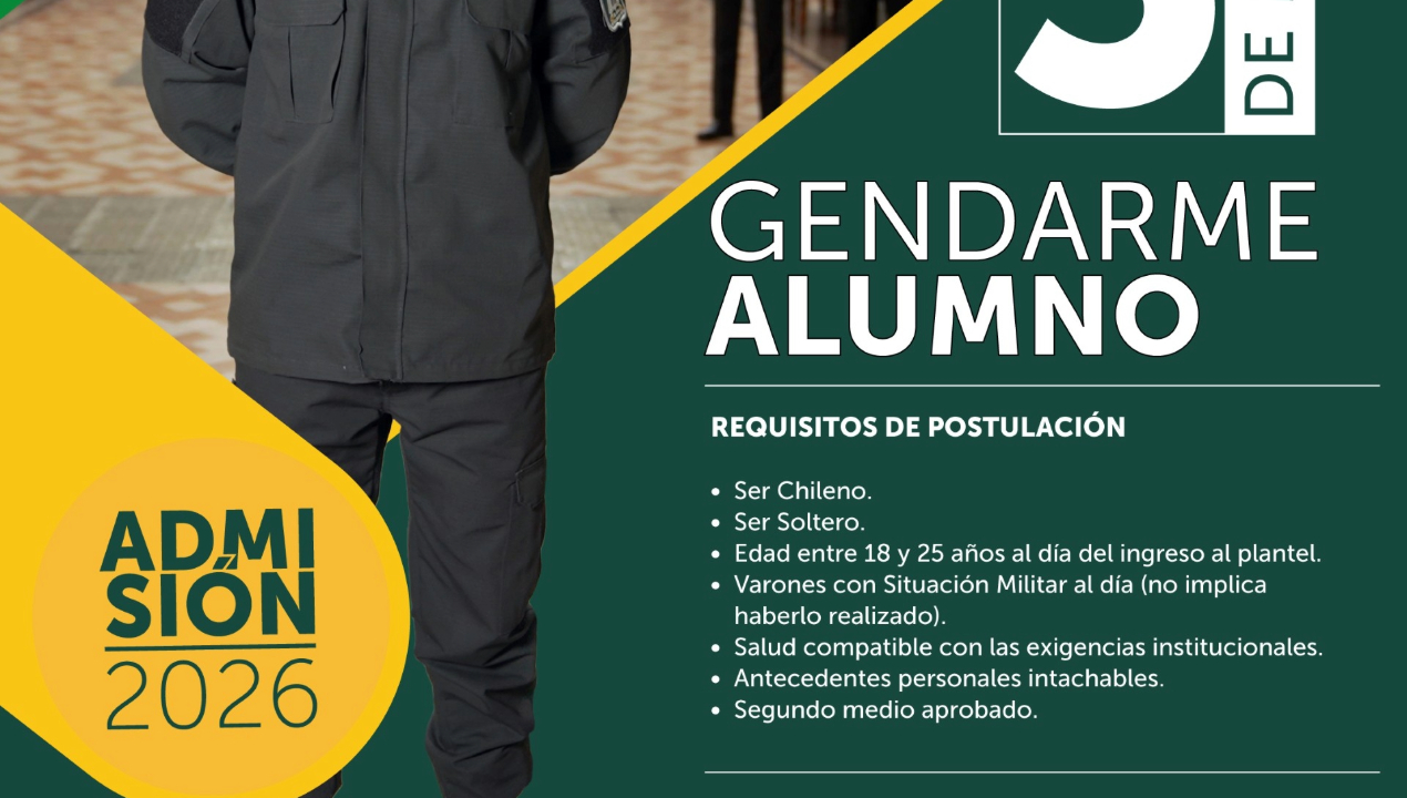 Gendarmería de Chile hace un llamado a jóvenes varones entre 18 y 25 años que deseen formar parte de la Institución, en un momento clave para el fortalecimiento de la seguridad del país.
