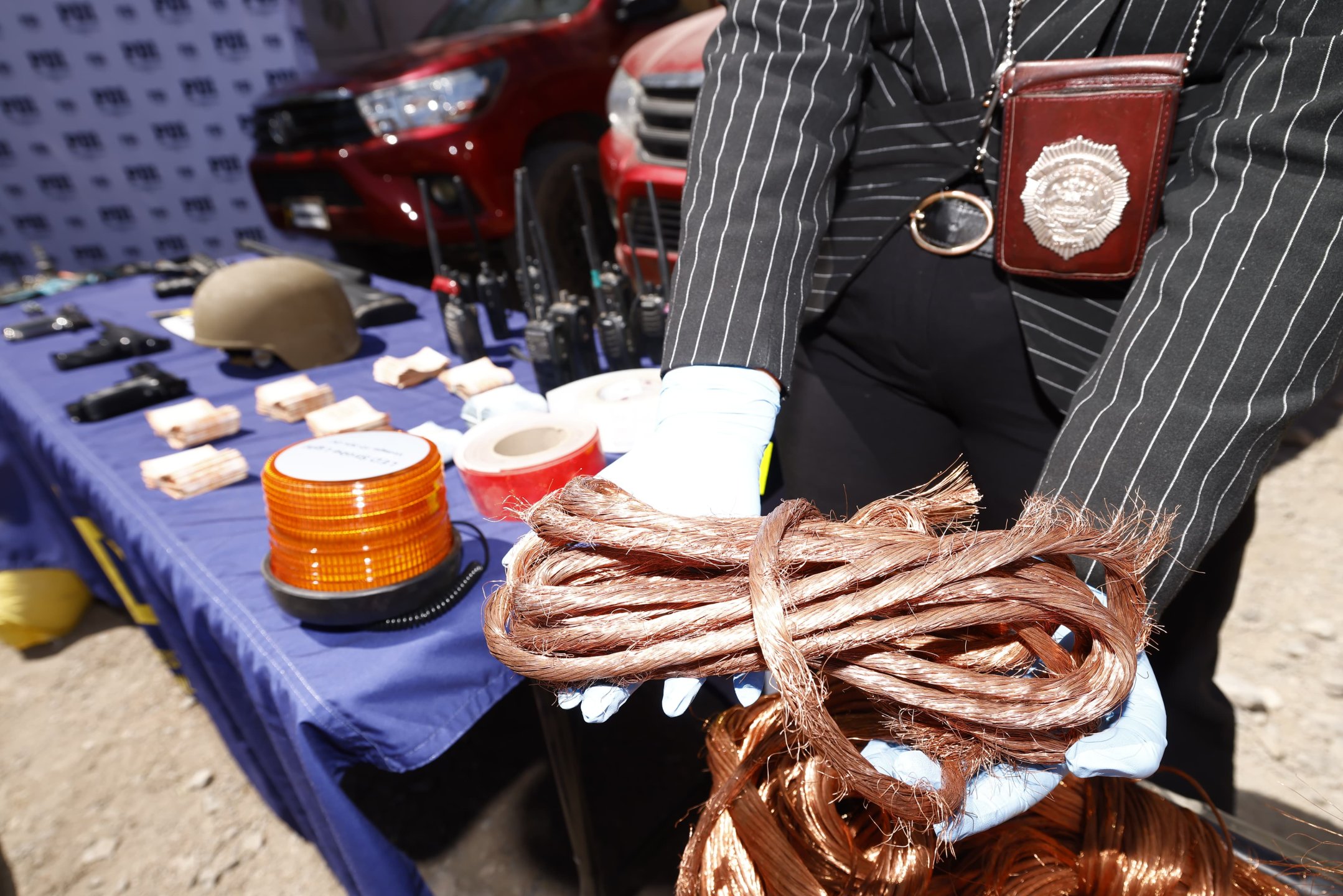 Investigación interregional permitió desarticular organización criminal activa desde 2018, con 23 detenidos, incautación de armas, vehículos y más de 13 toneladas de cobre
